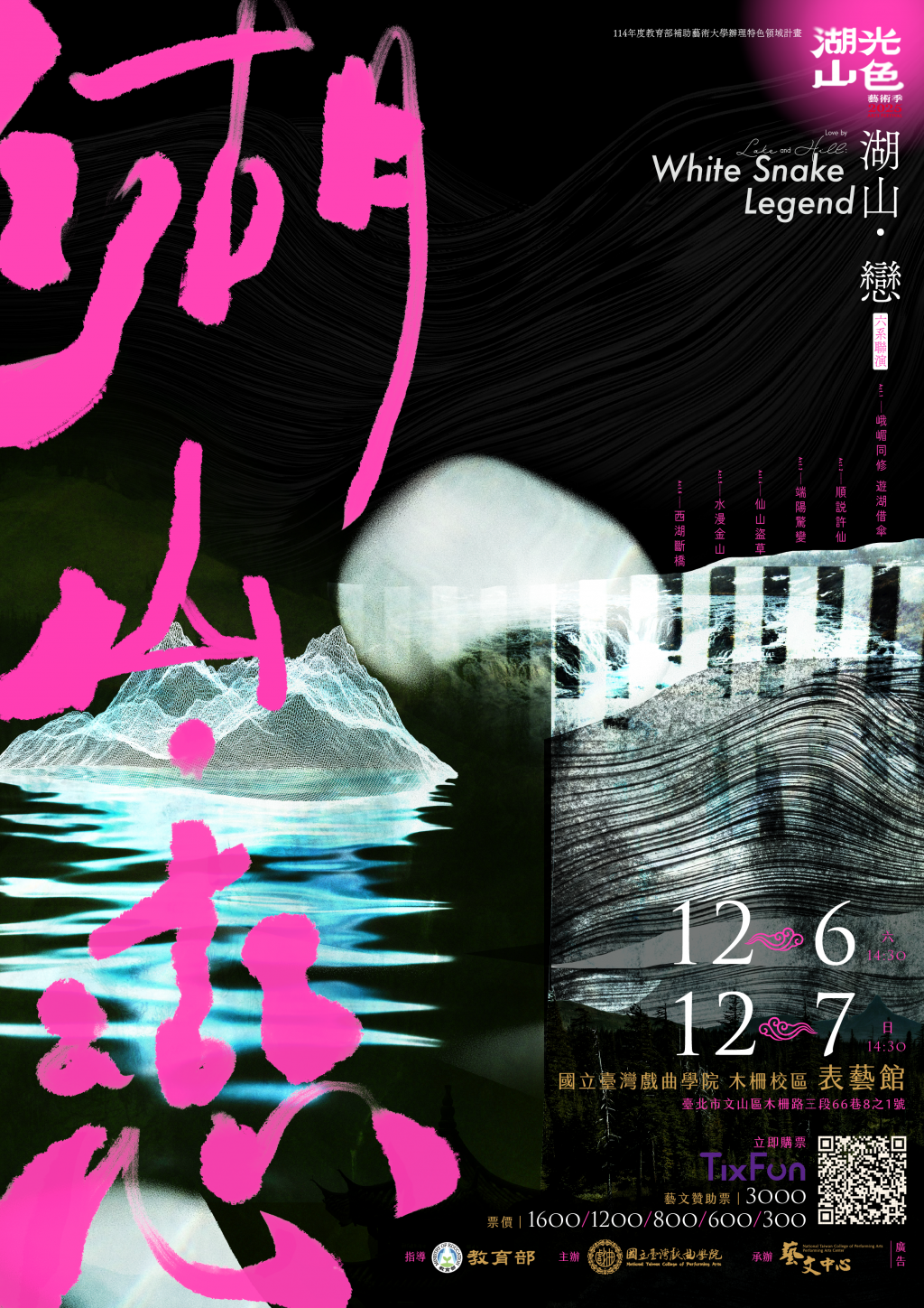 一、 | 本校藝文中心為推廣戲曲文化之傳承並落實藝術教育之根基,每年度均策劃辦理「湖光山色藝術季」系列演出,本(114)年度演出自11月1日開跑,於本校木柵校區表藝館共推出五檔演出,包含京劇、客家戲、歌仔戲及六系聯演等多元劇種。 |