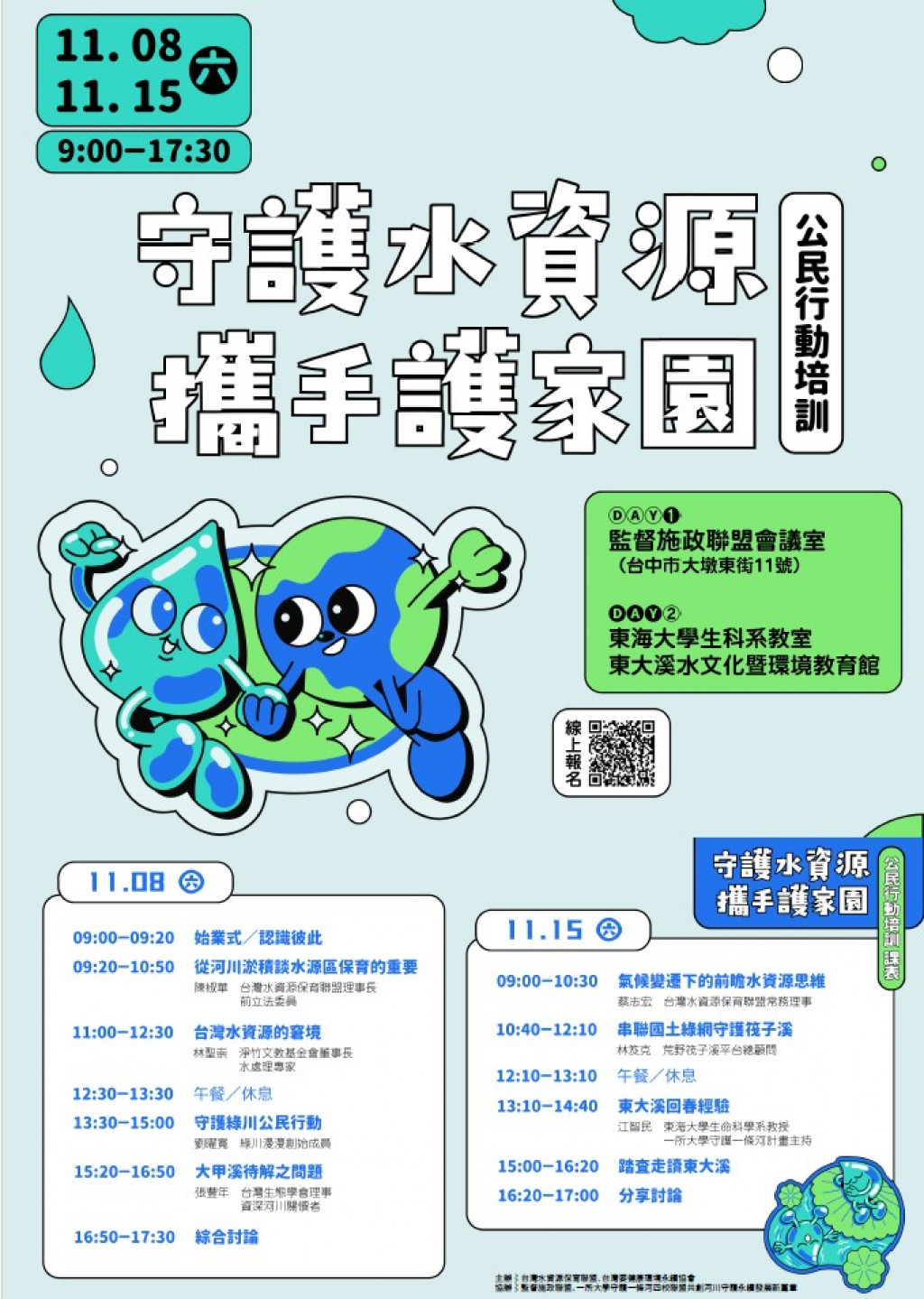 本培訓依課程時間核予環境教育時數,每堂課程時數為1.5至3小時