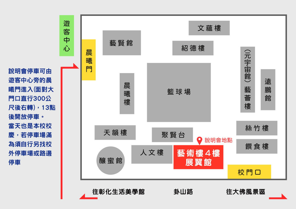 說明會地點:本校藝術樓4樓 展翼館