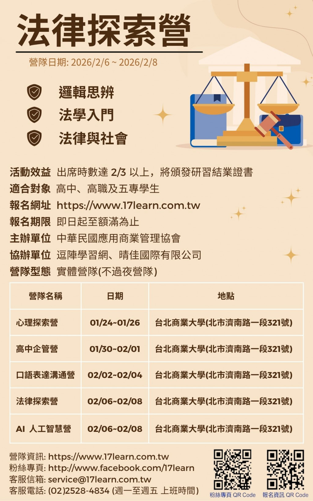 社團法人中華民國應用商業管理協會~法律探索營-2026冬令營報名開始