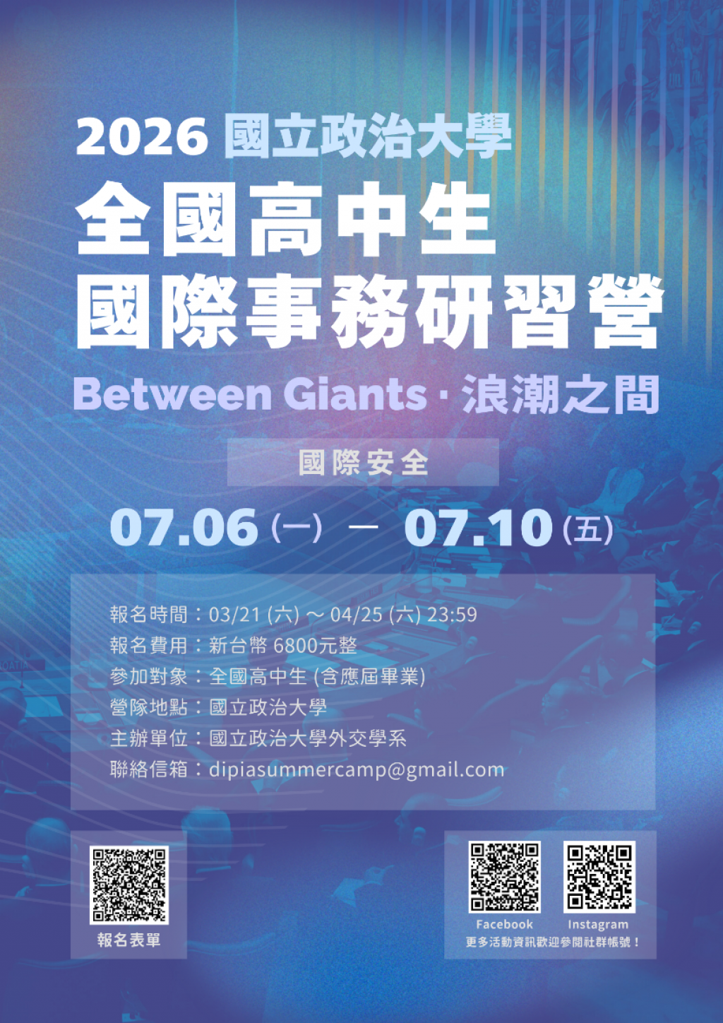 國立政治大學外交學系「2026全國高中生國際事務研習營」活動宣傳海報電子檔及線上報名表連結