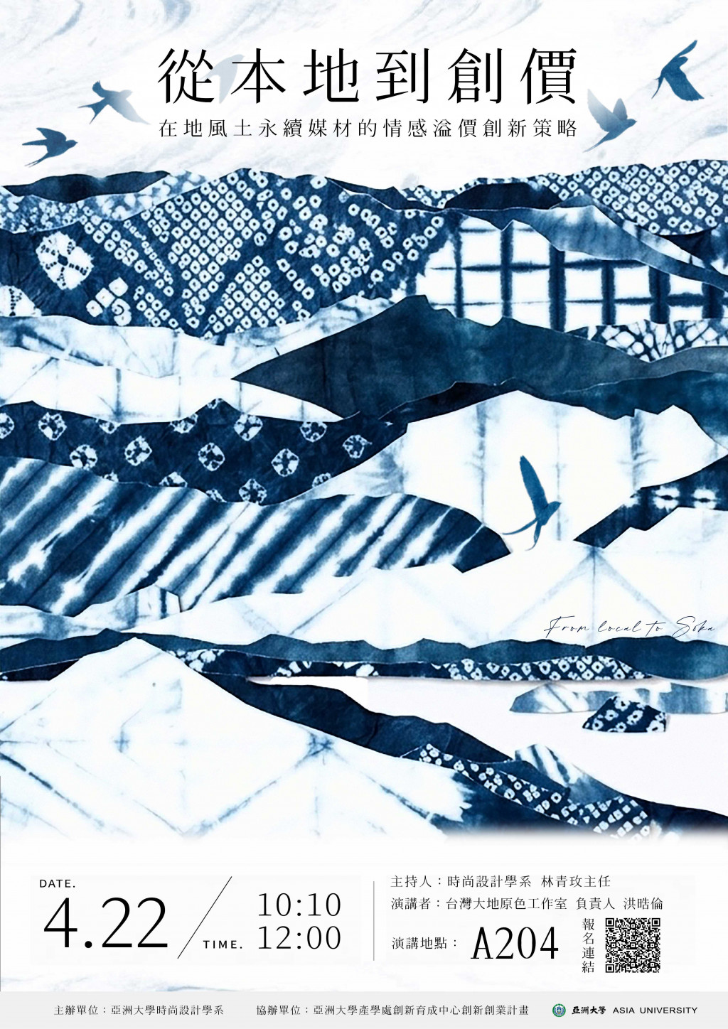 | 二、 | 染色系列講座一:從本地到創價,在地風土永續媒材的情感溢價創新策略。 |